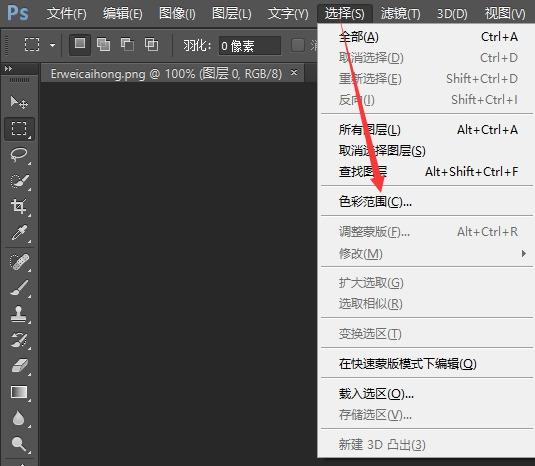 将二维码导入PS,如果背景不是透明的话在 选择-色彩范围 中选择背景颜色